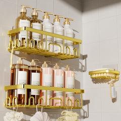Keeps shampoo, soap, and accessories neatly arranged and within reach